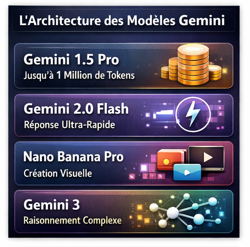 L’évolution de NotebookLM ne peut être comprise sans analyser l’intégration profonde de l’architecture des modèles Gemini de Google. Entre 2024 et 2026, NotebookLM a opéré une migration stratégique vers une configuration multi-modèles, exploitant chaque variante de Gemini selon des rôles bien définis — de l’analyse documentaire à la génération multimédia.