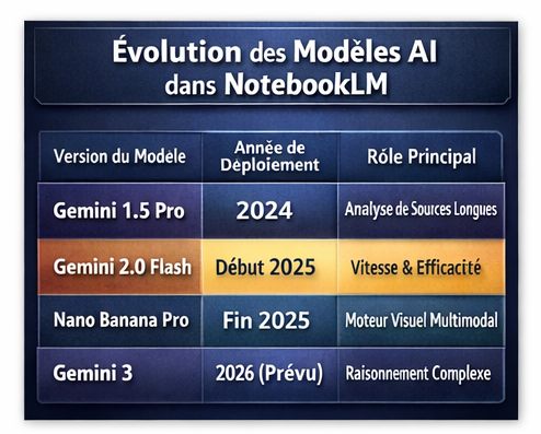 Version du modèle Année de déploiement Rôle principal dans NotebookLM Impact sur l’utilisateur