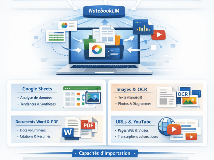 Vers une ingestion totale du flux de travail utilisateur dans NotebookLM L’évolution 2025–2026 ne concerne pas uniquement les modèles ou l’architecture agentique. Elle touche aussi un pilier fondamental : l’élargissement massif des formats d’entrée. L’ambition stratégique est claire : Permettre à NotebookLM d’ingérer l’intégralité du flux informationnel d’un utilisateur — quel que soit le format […]