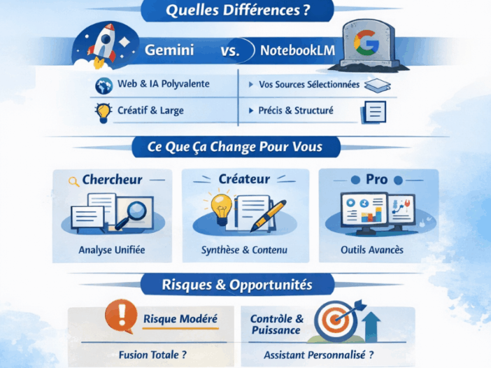 L’intégration annoncée entre Gemini et NotebookLM suscite à la fois enthousiasme et méfiance. D’un côté, la promesse d’un assistant IA capable d’exploiter vos recherches personnelles. De l’autre, la crainte d’un produit simplifié, dilué ou absorbé — scénario déjà vu chez Google. Vous cherchez probablement à comprendre : Est-ce une vraie fusion ou une simple interconnexion […]
